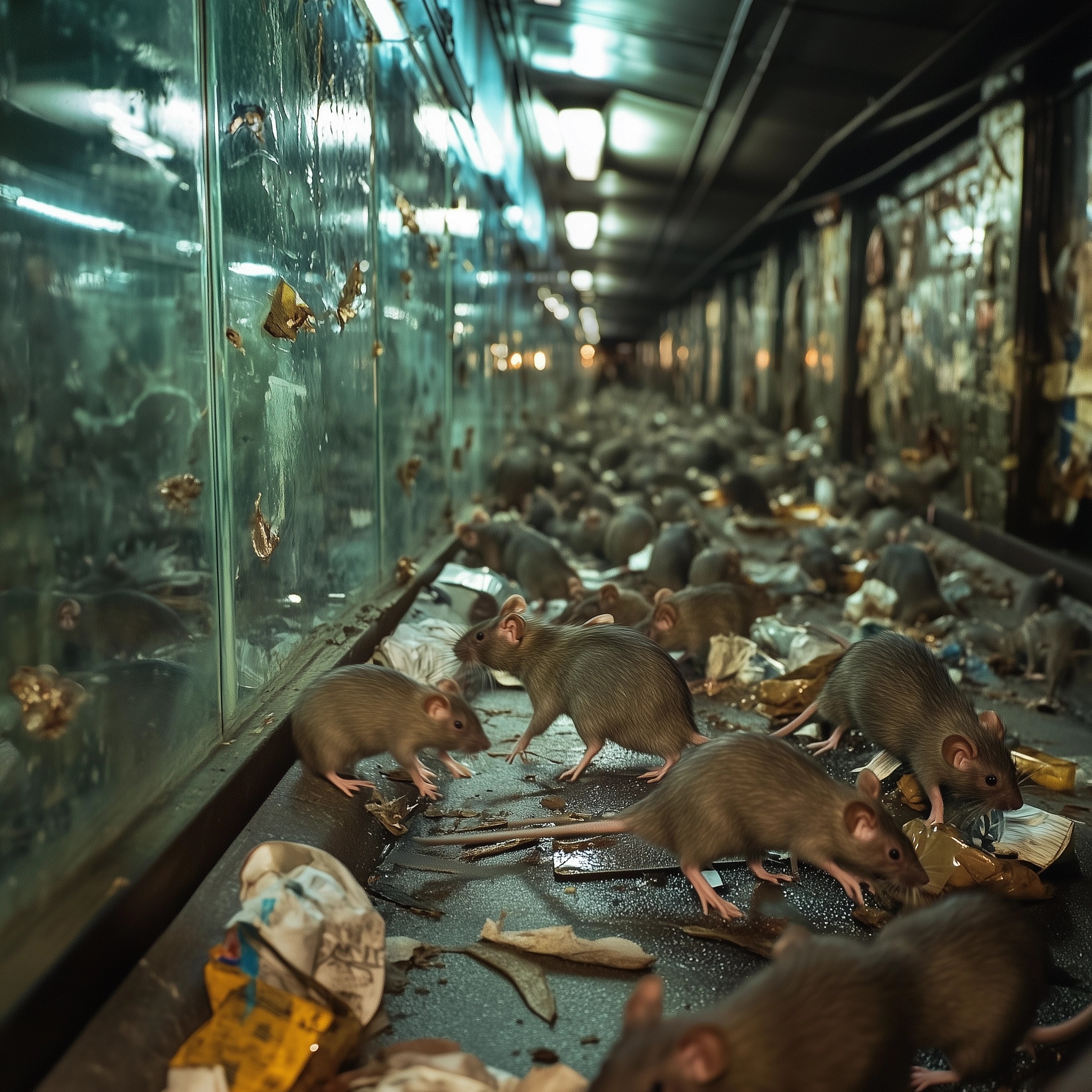 Just as rats spawn in the filth of human consumption, the “rat race” illustrates how society feeds on the endless pursuit of prosperity, often leaving destruction and exhaustion in its wake.